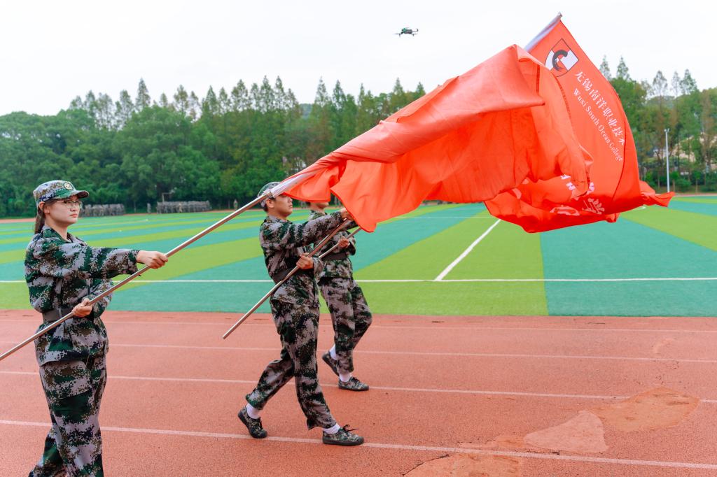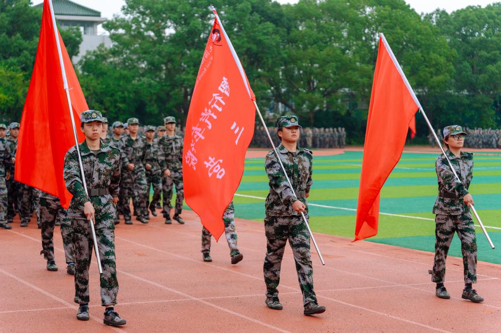 开学典礼暨军训成果汇报大会在庄严的升旗仪式中拉开帷幕。伴随着雄壮的中华人民共和国国歌,五星红旗冉冉升起,全体师生肃立行注目礼。