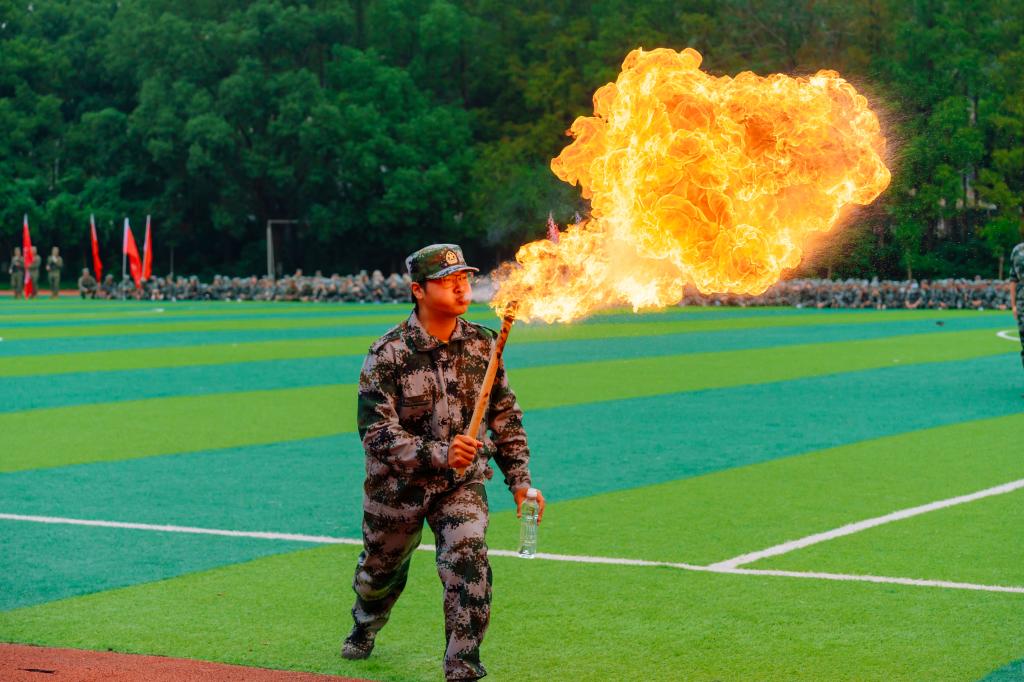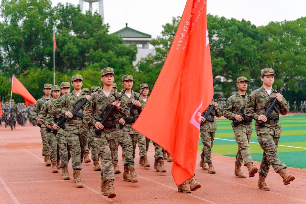护旗方队以整齐划一的姿态稳步前行,步伐铿锵间满是朝气与力量,手中的旗帜如火焰般耀眼,传递着热血与担当。