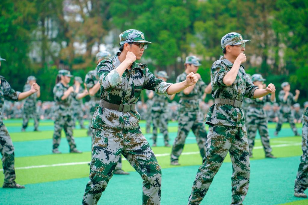 分列式后,学生方队为全场师生带来了精彩的刺杀操、匕首操、应急棍、擒敌拳等表演节目。他们动作干脆利落,气宇轩昂,虎虎生威,喊声震天,赢得现场阵阵掌声。