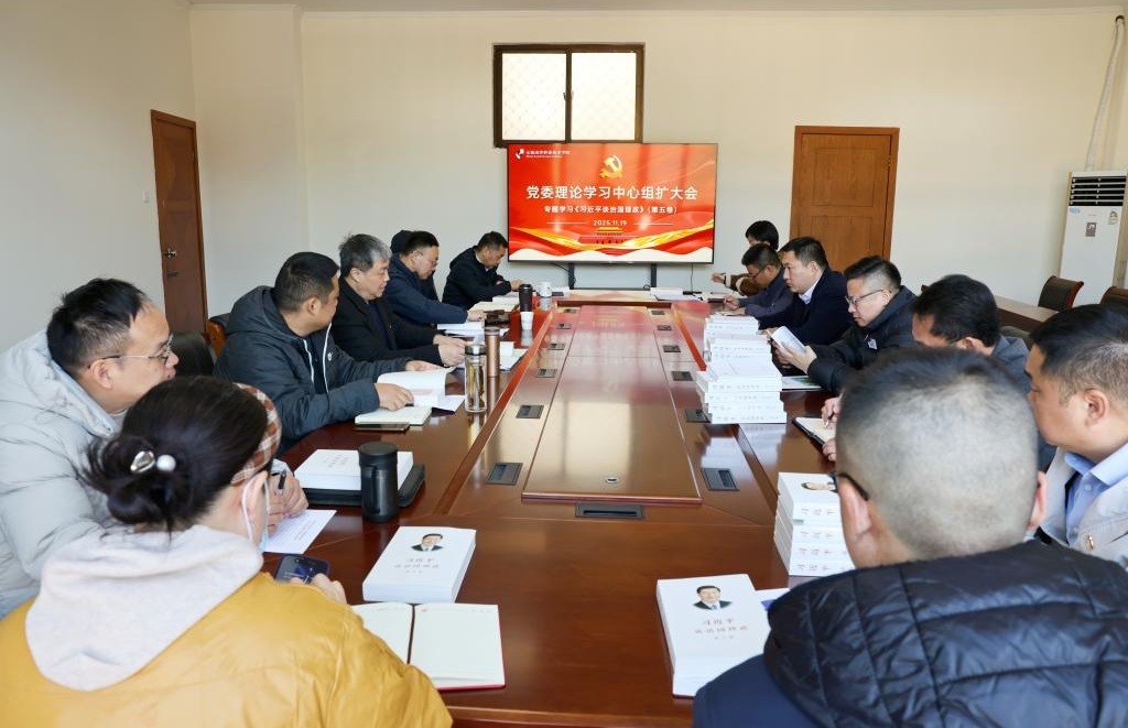 为坚持不懈用习近平新时代中国特色社会主义思想武装头脑、统一思想、凝聚共识、指导实践,在前期个人自学基础上,11月19日上午,校党委理论学习中心组在博学楼二楼会议室举行学习(扩大)会,专题学习《习近平谈治国理政》第五卷。全体校领导班子、党委委员、纪委委员及各党总支书记参会,党委书记沈苏林主持并领学。
