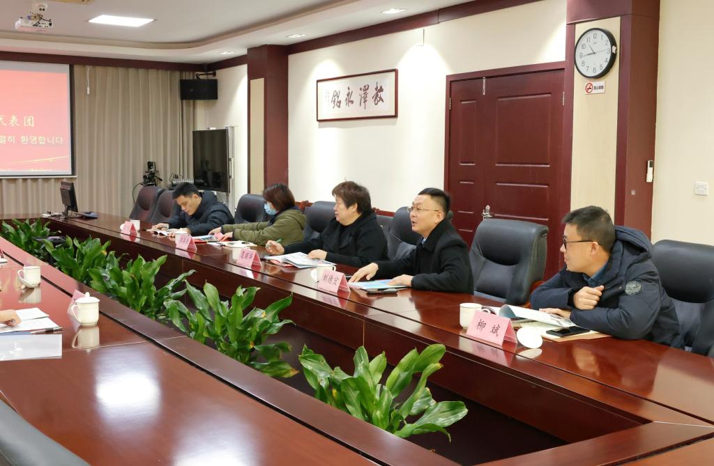 校园考察结束后,双方在怀德楼会议室举行座谈交流会,就校际合作事宜展开深入探讨。会上,夏校长首先代表学校对郑熙锡校长一行的远道而来表示热烈欢迎,并围绕学校办学理念、学科专业布局、人才培养特色及国际化发展规划等方面作了详细介绍。随后,郑熙锡校长介绍了韩国圣洁大学的办学历史、优势学科及国际合作成果,他高度肯定我校的办学成效与发展潜力,并明确表达了与我校建立长期稳定友好合作关系、携手开展多领域人才联合培养的积极意愿。
