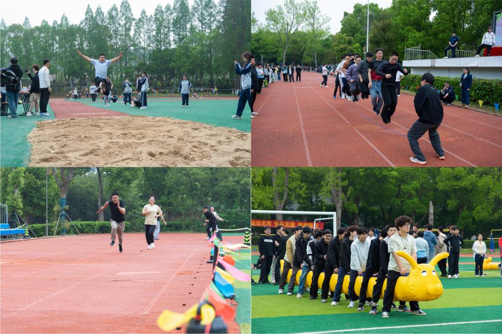本次赛事涵盖学生田径竞技、团体趣味项目、教职工分龄赛事三大板块。学生组设100米、800米、跳远、实心球、4×100米接力等田径项目,同时开展充气毛毛虫、20人21足、跳大绳、拔河等团体趣味赛,既比速度力量,更赛协作默契。