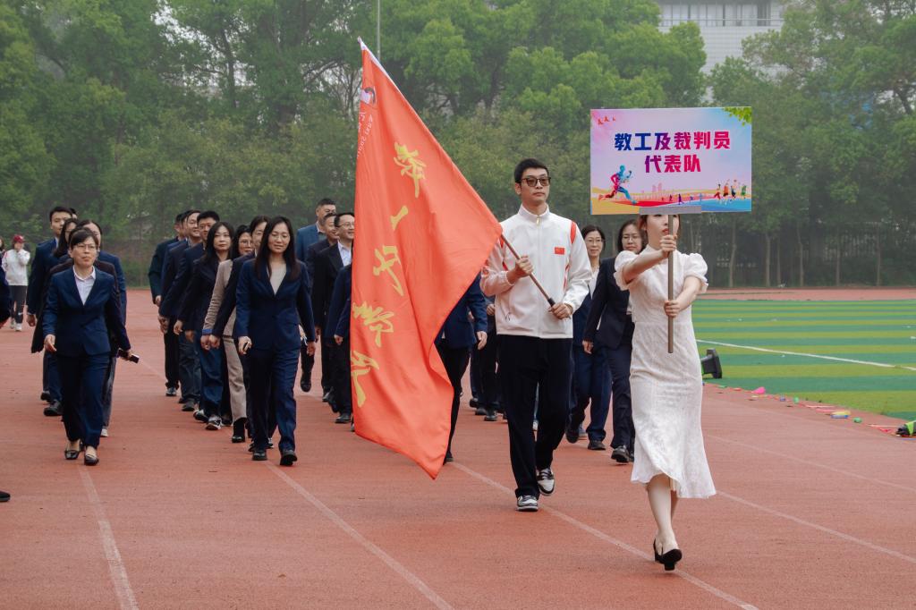 《运动员进行曲》激昂奏响,国旗队、校旗队引领各学院运动员、教职工与裁判员代表队有序入场。学子们用创意十足的方阵表演诠释专业魅力,教职工与裁判员则以坚定步伐,展现出教育工作者的沉稳与担当。