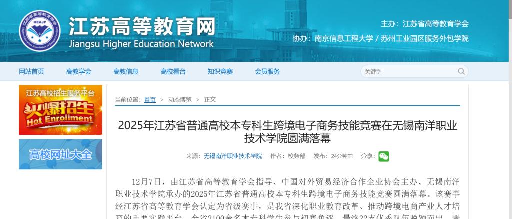 下一条:2025年江苏省普通高校本专科生跨境电子商务技能竞赛在无锡南洋职业技术学院圆满落幕