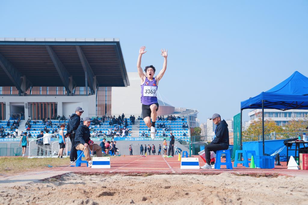 本次比赛由无锡市教育局、无锡市体育局联合主办,吸引了全市93所大中小学校的1472名运动员同台竞技,共设102个比赛项目,竞技水平与参与规模均创历年新高。在竞争激烈的高校组赛事中,南洋学子展现出强劲实力:女子短跑项目成为最大亮点,我校数字商务学院会计252班李晨好同学在女子高校组100米、200米决赛中强势夺冠,两次以绝对优势率先冲线,用风驰电掣的速度诠释了“更快”的体育精神;田赛赛场上,男子跳远选手现代服务学院烹饪242班蒋熙同学助跑、踏跳、腾空一气呵成,如雄鹰展翅般跃入沙坑,以优异成绩摘得桂冠,为学校赢得首金。