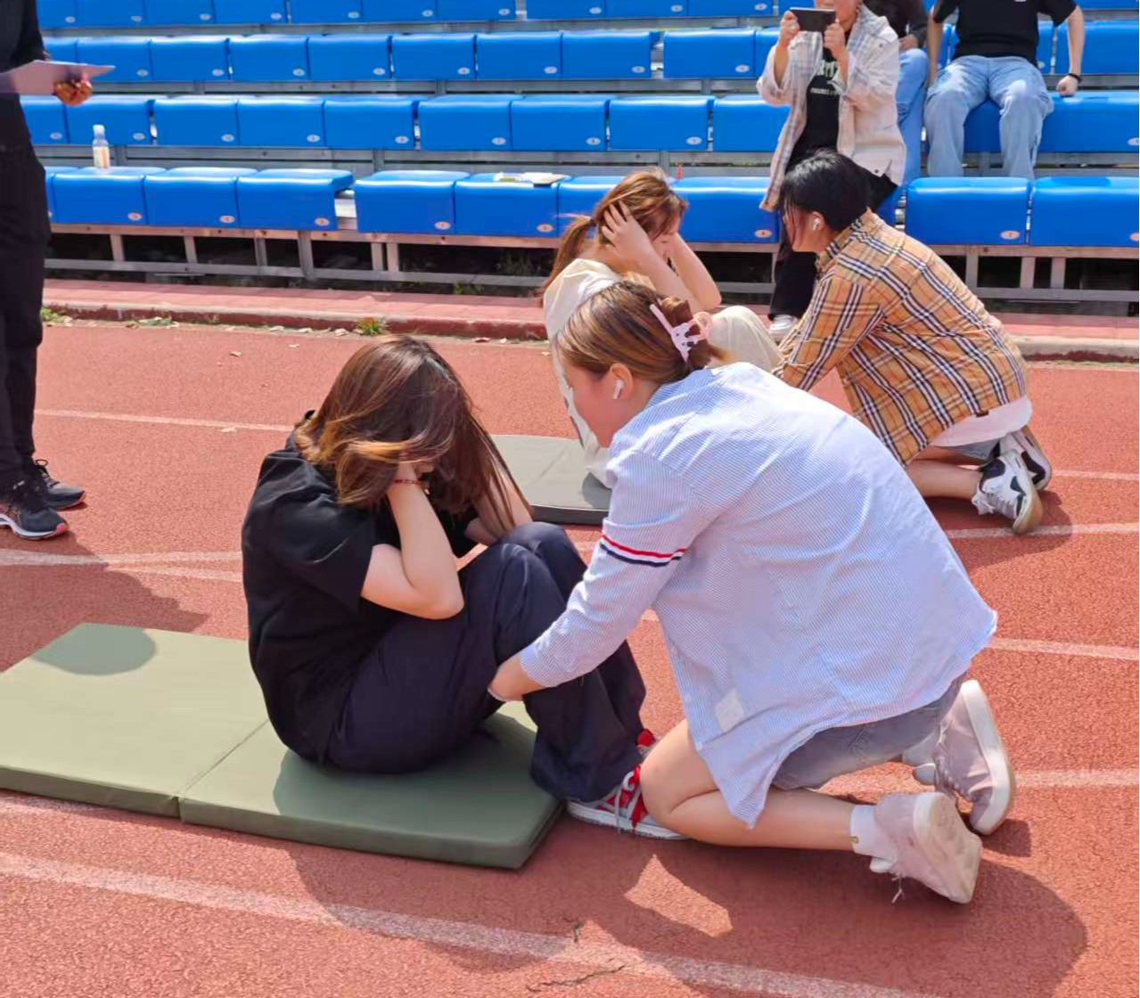 赛事当天,运动场气氛热烈、斗志昂扬,各项赛事有序开展。在一分钟仰卧起坐赛场,参赛同学屏息凝神、动作标准,以最快速度、最佳状态全力冲刺,每一次起身都凝聚着坚持与力量;三级蛙跳项目中,选手们助跑、蹬地、腾空、落地连贯利落,凭借出色的爆发力与身体协调性,向着更远的距离奋力跳跃,展现出扎实的运动功底。
